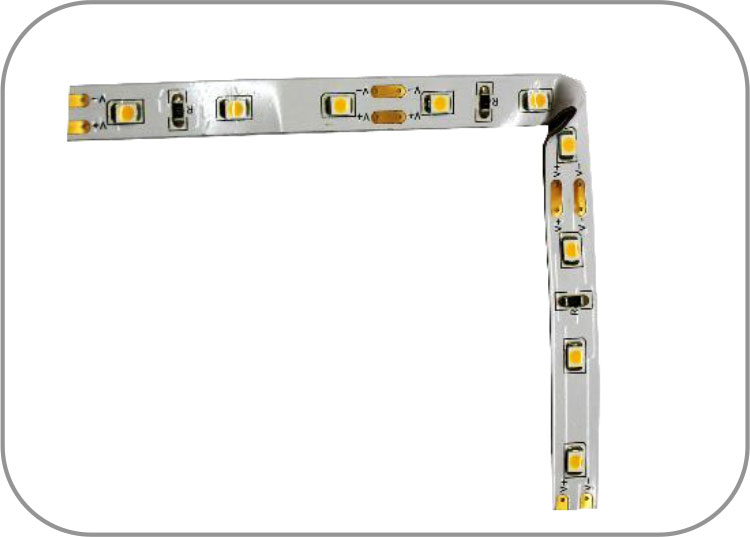 Med tanke på en ledtejpens utformning är 90 graders hörn ibland en utmaning. Det finns lödhörn som i första hand rekommenderas, men nedan är några andra vik-varianter om plats och aluminiumprofilen tillåter: