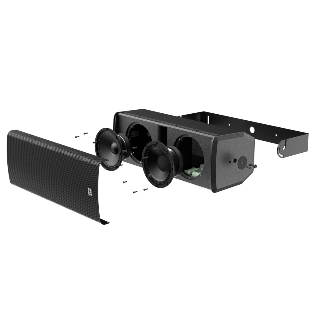 Nu försedd med 1,4″ driver, ökad effekttålighet: Väggfäste eller U-bygel som tillbehör. Bakstycket kan bytas ut till 100V lösning, precis som övriga Vexo-högtalare.